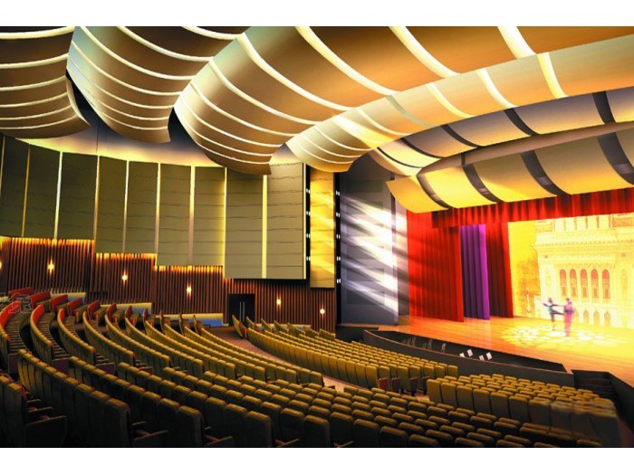 The theatre is refers to the specific, from the permanent building body arena, dedicated to the theater, drama, opera, dance, art, music and other entertainment, now also has the function of theatre film. The theater is composed of three parts: 1, performing space -- stage show or other forms of; 2, watched the performance place -- the audience; 3, other subsidiary performance space -- performers rest place, change. Common theatre forms can be divided into the relationship between the stage and the audience: 1, proscenium stage; 2, three stage; 3, ring stage (four stage, arena); 4, the Black Box Theatre